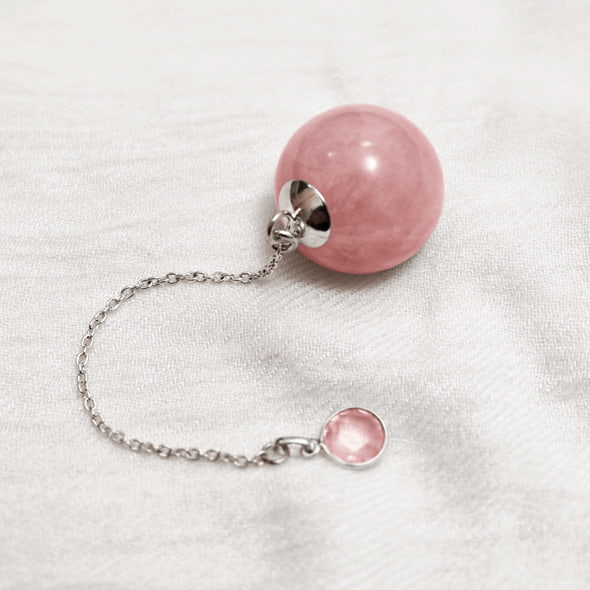 Yoni-Kugel aus Rosenquarz mit Silberkette